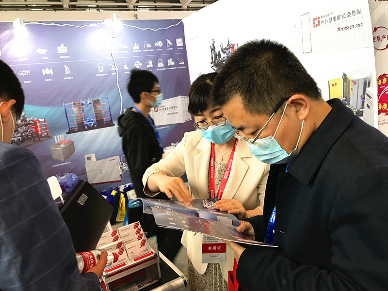 上海艾克森受邀参加了此次展会,艾克森的换热产品和解决方案吸引了众多新老客户前来咨询和技术探讨,公司参展人员向现场的行业专家们介绍了艾克森的祝融-标准化机组、户外集装式换热站机组和全焊接换热器等产品,同时分享了艾克森高效节能换热产品在西安曲江金辉世界城、天地源曲江香都、航天城二期、延安新区全民健身运动中心、神木供热户外集装式换热站及隆基新能源电池等项目中的优秀应用案例,新产品和新应用得到了诸多行业内的新、老客户的认可,引起了客户浓厚的兴趣。