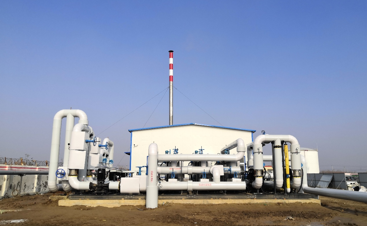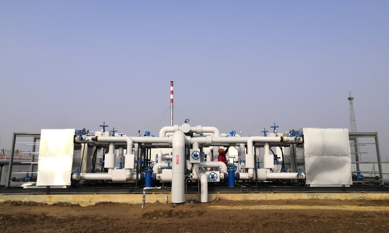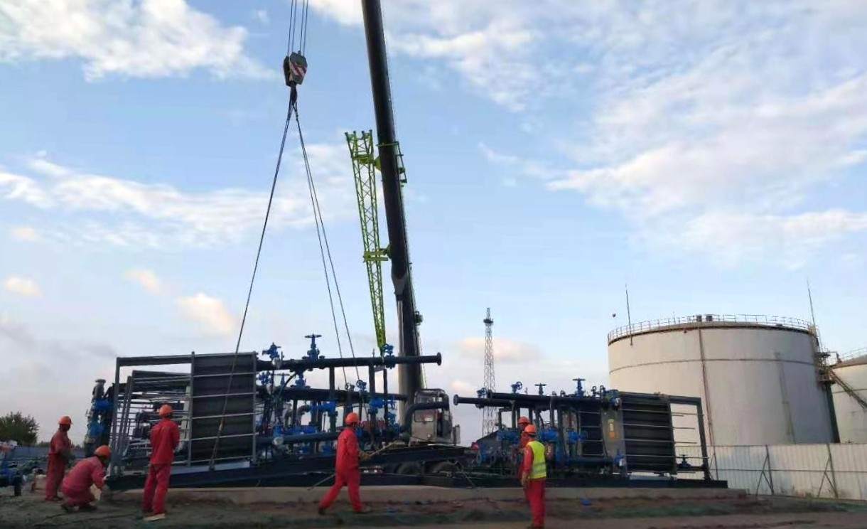 用于胜利油田河口采油厂义和联合站污水余热利用项目的工业换热撬装装置是艾克森为胜利油田定制的系统集成产品。艾克森结合二十多年的集成产品和应用经验,将原有项目的换热器部件加现场安装方式变成预制化集成撬装整机交付,设备到场后仅需吊装和管道连接,解决了联合站防爆和快速交付需求,过程零动火施工同时实现了不停产改造;结合流体是含蜡量高、腐蚀速率高的复杂介质,采用高流通能力板型和耐腐蚀合金材料;面对井场可用面积小,艾克森优化结构设计,并加装自动反冲洗。经过艾克森技术团队与用户多次沟通技术交流,结合设计讨论和技术论证及现场勘查,最终选用的MP/GU系列工业换热撬装解决方案,设备整体撬装出厂,现场接管即用,施工风险归零,换热器采用特种合金板片+专利流道设计+自动反冲洗技术多项技术融合,解决联合站内原油高含蜡流体难题,很好的满足了项目长期稳定和低能耗运行。