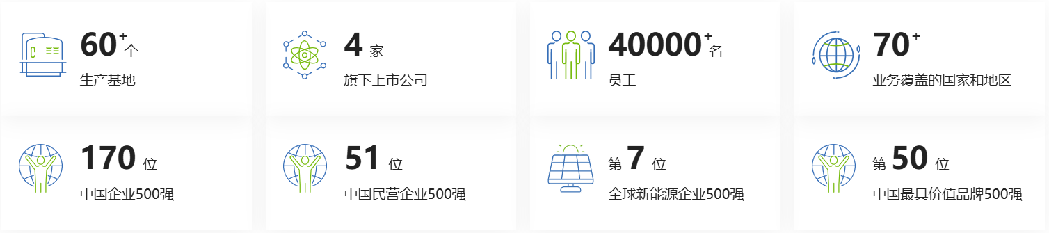 协鑫(集团)是一家在碳达峰、碳中和目标引领下,以风光储氢氨醇等多种形式的新能源、清洁能源与可再生能源为主体的绿色低碳科技企业。始终坚持科技引领、数字赋能,围绕硅材料、锂材料、碳材料和集成电路核心材料,进行能源科技创新,以材料革命带动制造革命和应用革命。营业收入近2000亿元,旗下拥有协鑫科技、协鑫集成、协鑫新能源、协鑫能科等多家上市公司。跻身世界品牌500强,并连续多年稳居全球新能源500强以及中国企业500强新能源行业前列,位居中国民营企业500强第51位、中国战略性新兴产业领军企业100强第25位。